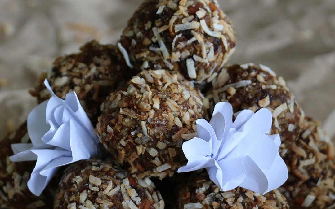 5. 在每個球上裹上烤椰蓉 (牛油果最好的朋友之一),然後吃掉。
